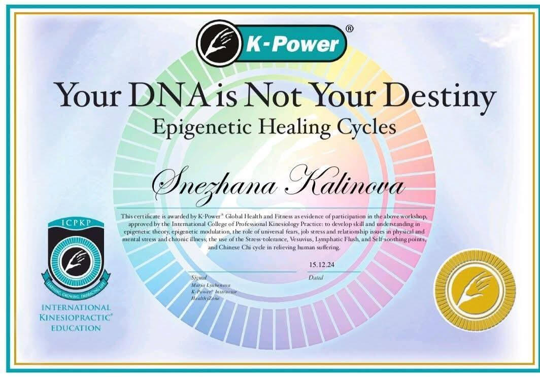 За мен е чест да бъда част от вашето трансформационно пътуване. С моите методи ще научите как да се свържете с вътрешната си сила и да достигнете целите си с лекота и увереност.Съчетавам знанията си в епигенетиката, психологията, квантовия метод, храненето на клетъчно ниво и личностното израстване, за да предложа решения, които действат бързо и ефективно.Животът е пълен с възможности, които чакат да открием вътрешната си сила и да ги проявим.Моята мисия е да пробудя у всеки неговите божествени дарби и да го вдъхновя да ги използва смело, за да създаде живота, който наистина желае. След години на търсене на правилните методи и обучения, открих как да насоча хората към вътрешен баланс между дух, душа и тяло.С моята подкрепа можете да се освободите от вътрешни блокажи, да пуснете контрола и да трансформирате натрупаните обиди и негативни убеждения. Резултатът е по-добро здраве, силна връзка със себе си и по-хармонични отношения с околните.